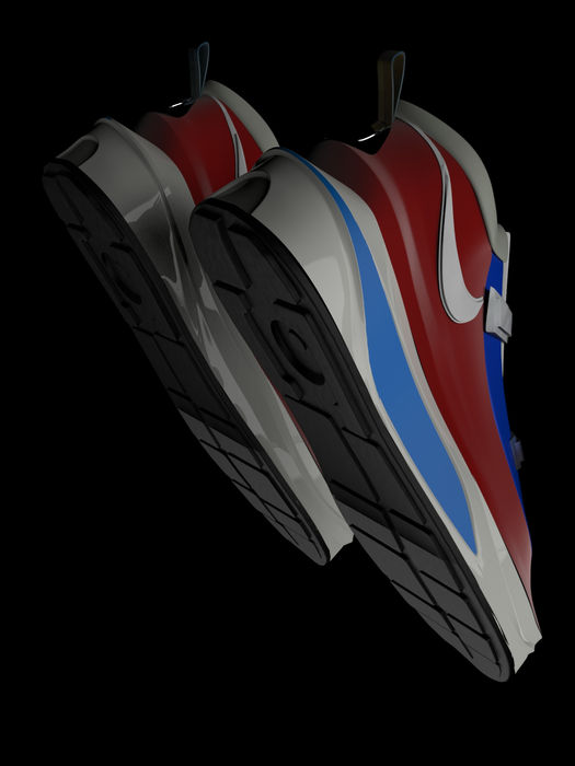 Metallic edges convey precision, while red and blue echo Belmont’s colors.